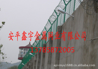 監(jiān)獄防護網(wǎng)又稱監(jiān)獄護欄網(wǎng)或監(jiān)獄隔離柵,主要是采用高強度的刀片刺網(wǎng)與普通防護網(wǎng)的分離,由V型支架立拄,增強型焊接片網(wǎng),平安防盜銜接件和刀片刺網(wǎng)組成.刀片刺網(wǎng)是一種新型防護網(wǎng),由銳利尖角鍍鋅鋼板或不銹鋼薄板做刀片,鋼絲做芯線組合而成的防護器材。具有嚇阻、防翻越等效果,材質(zhì)堅硬,高強度,高張力,外型設(shè)計共同,不宜觸摸,因此能到達極好的防護隔離效果.監(jiān)獄護欄網(wǎng)還具有施工煩瑣,經(jīng)濟適用等優(yōu)點